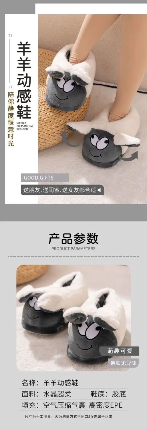 Slip into cozy cuteness with our Crocodile/Animal Cotton Slippers with Moving Mouth/Ears—a funny new-style house shoe that keeps feet warm and smiles wide. Made from crystal-soft short plush with high-density EPE air-compression airbags, these slippers “come alive”: step on the heel and the ears/mouth move! The thick, breathable lining and non-slip sole make them perfect for daily wear in the dorm or at home.