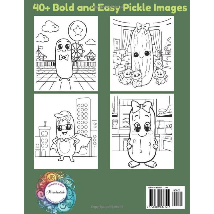 Dive into a world where happy dill pickles explore, play, and bring a smile to your face! The Dill-lightful Pickle Adventures coloring book is a uniquely charming collection featuring everyone's favorite briny friend in a variety of funny, cute, and surprisingly stress-relieving scenes.