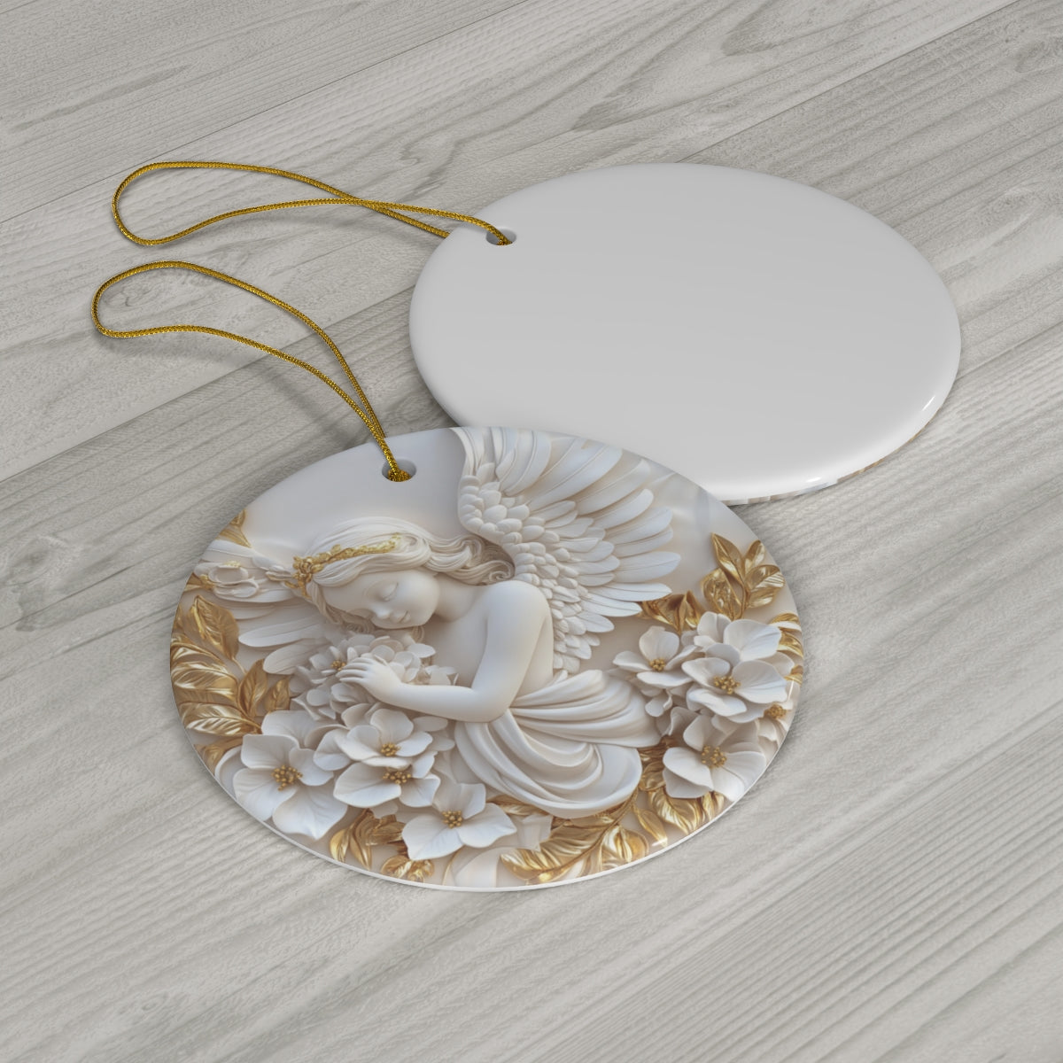 Embody serenity and grace with this Elegant Ceramic Angel Ornament, a breathtaking piece that combines timeless artistry with spiritual beauty. Handcrafted from premium ceramic, this ornament features a serene angel surrounded by delicately sculpted flowers and gilded leaves, symbolizing love, protection, and divine peace.