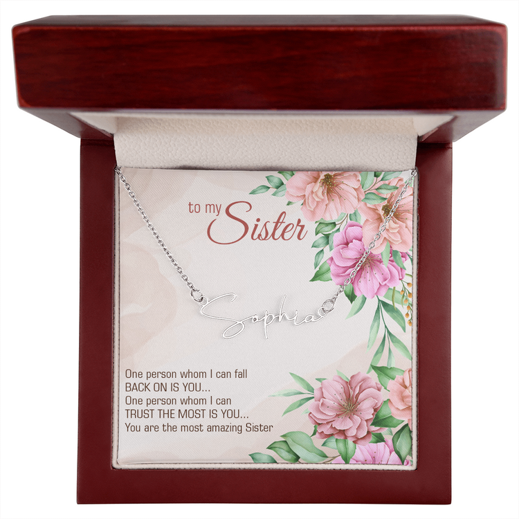 “To My Sister” Signature Style Name Necklace – Custom 11-Char Script, Stainless Steel or 18K Gold, 16–18" Chain, Made in USA