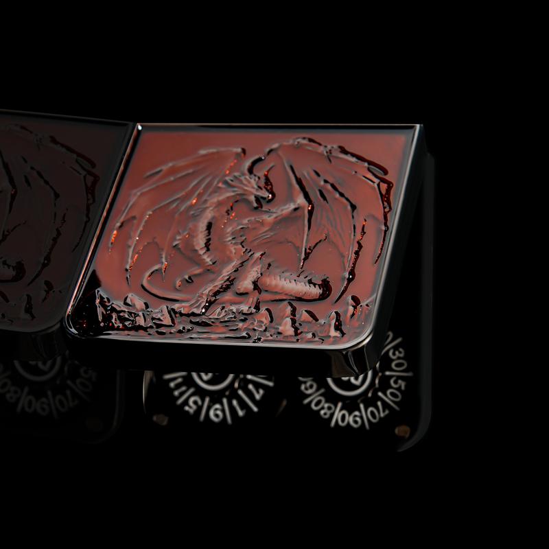 Fantasy aesthetic: Dragon-engraved case + steampunk look that stands out on any table