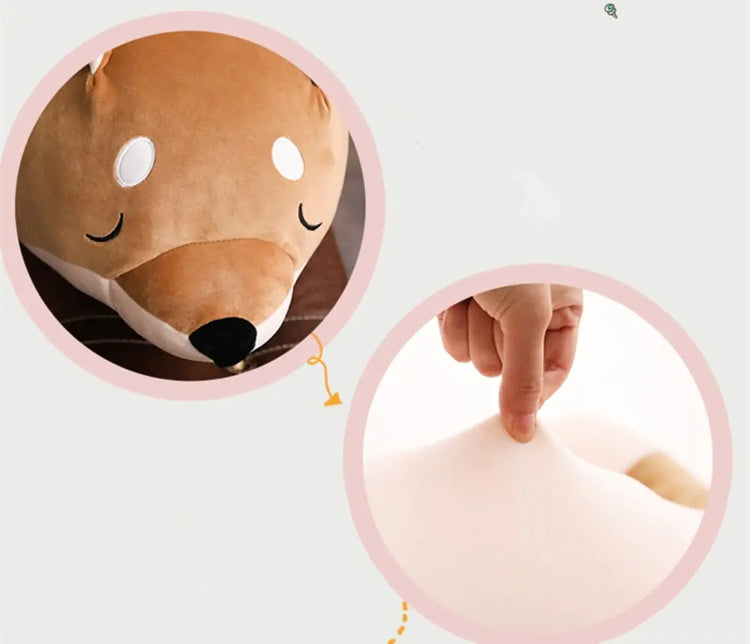 Find your new favorite snuggle companion with our Soft Plush Dog Pillow, the ultimate long-form stuffed toy designed for maximum comfort and cuteness. Shaped like a sleepy Shiba Inu or Corgi, this elongated plushie is more than just a toy—it’s a functional body pillow that supports a restful night's sleep.