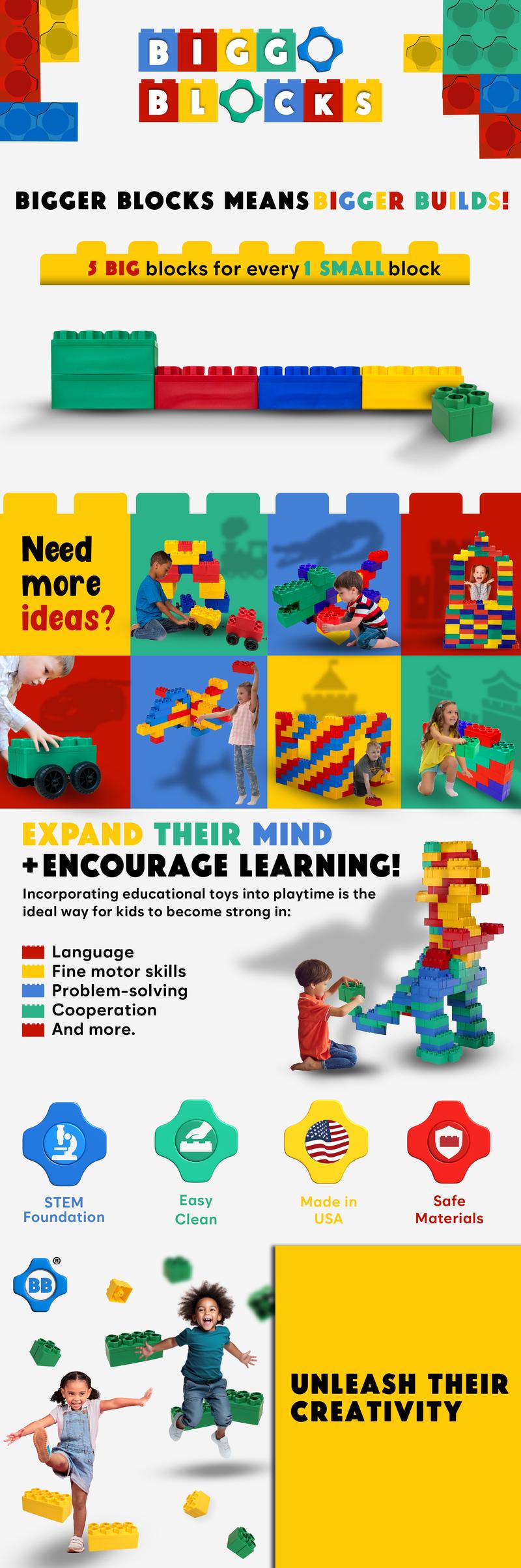 Jumbo Building Blocks 96-Piece Set – Biggo Blocks for Kids Ages 3–8 | Large Indoor & Outdoor STEM Construction Toy