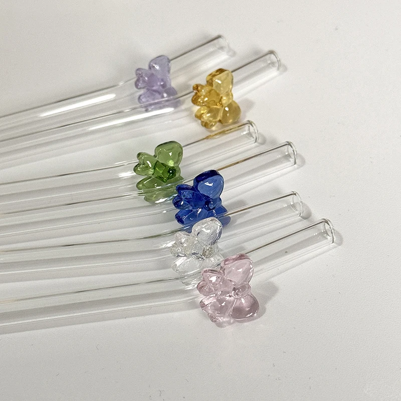 Sip sustainably in style with this 19 cm heat-resistant glass straw featuring a cute bowtie design.