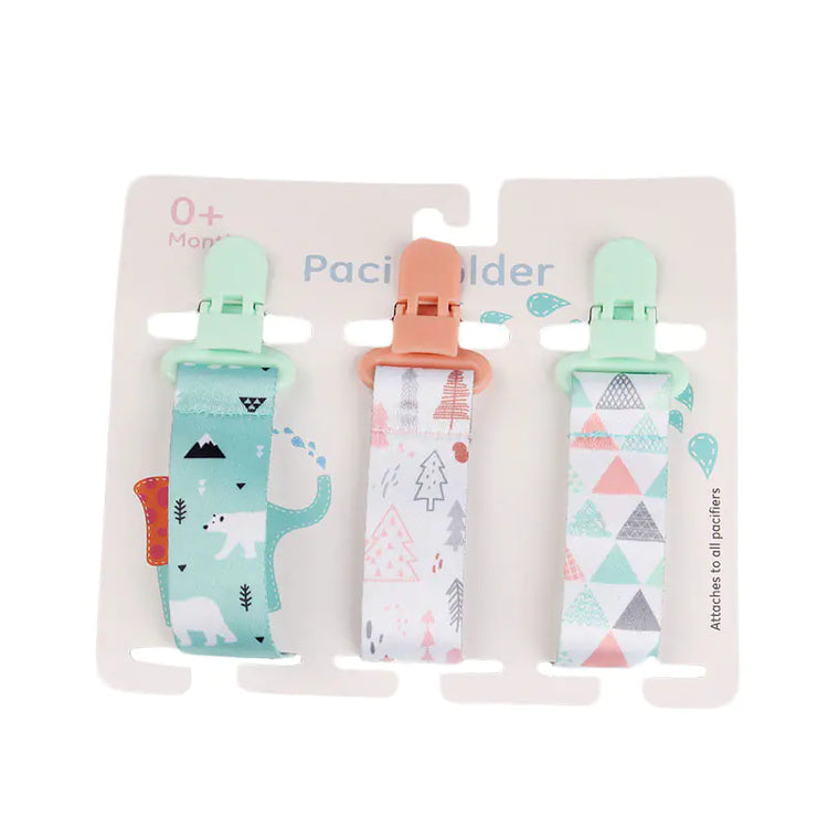 Keep your baby's pacifier close and secure with our Cartoon Pattern Combination Three Packs of Baby Pacifier Teether Clips!