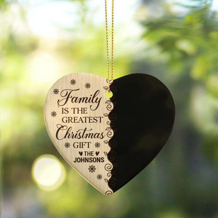 Celebrate the love that makes the holidays special with this Ceramic Heart Christmas Ornament, featuring the heartfelt message “Family Is the Greatest Christmas Gift.” Crafted from high-quality glossy ceramic, this ornament beautifully combines a custom family photo with elegant lettering for a timeless keepsake. Perfect for decorating your Christmas tree or gifting to loved ones.