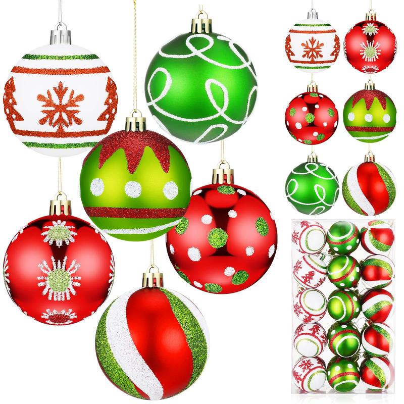 Glittering Red/Green/White Balls – 48 pcs (1.6”–2.4”)