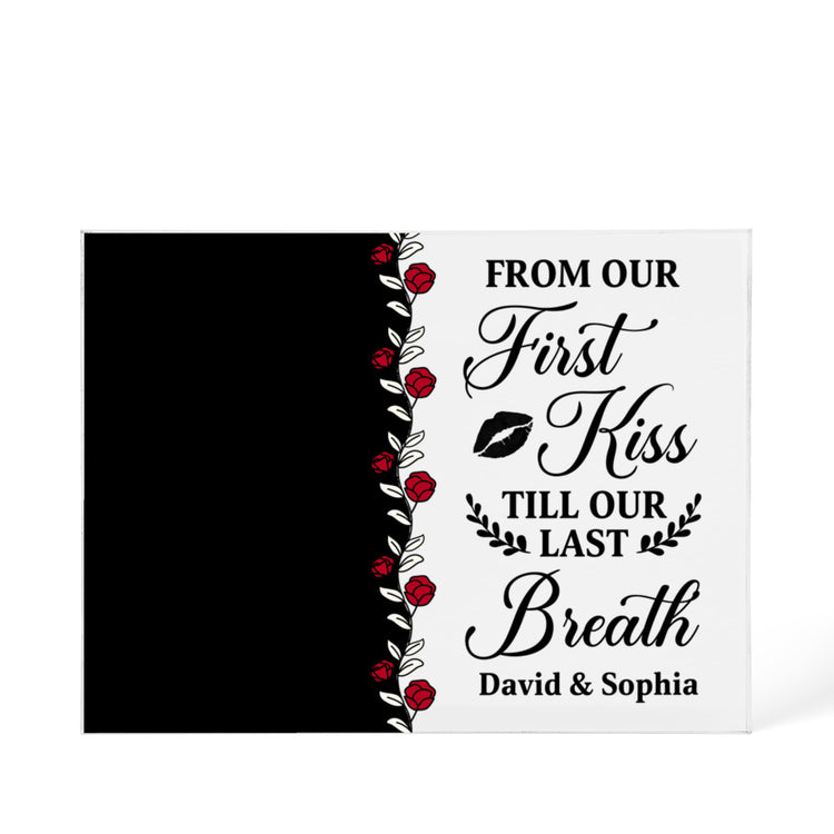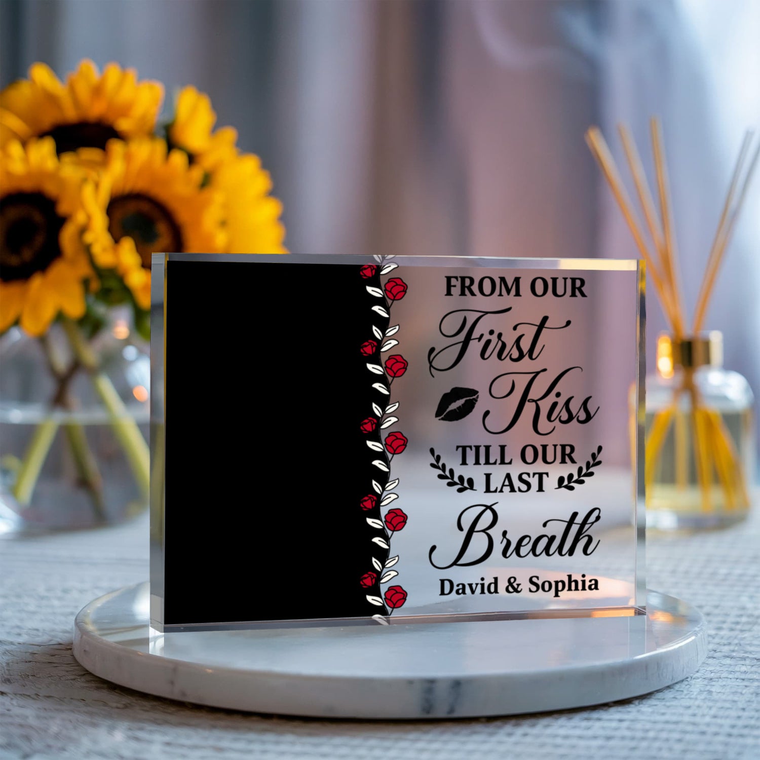 From Our First Kiss Till Our Last Breath Personalized Acrylic Plaque – Romantic Couple Gift for Anniversary, Wedding, or Valentine’s Day