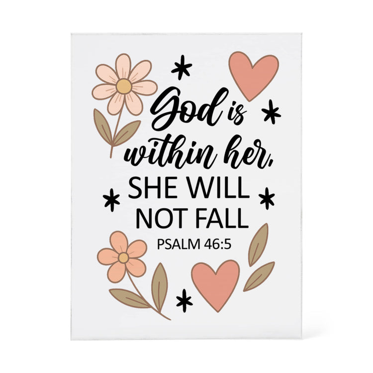 Celebrate faith, strength, and divine confidence with this beautiful “God Is Within Her, She Will Not Fall” acrylic plaque inspired by Psalm 46:5.