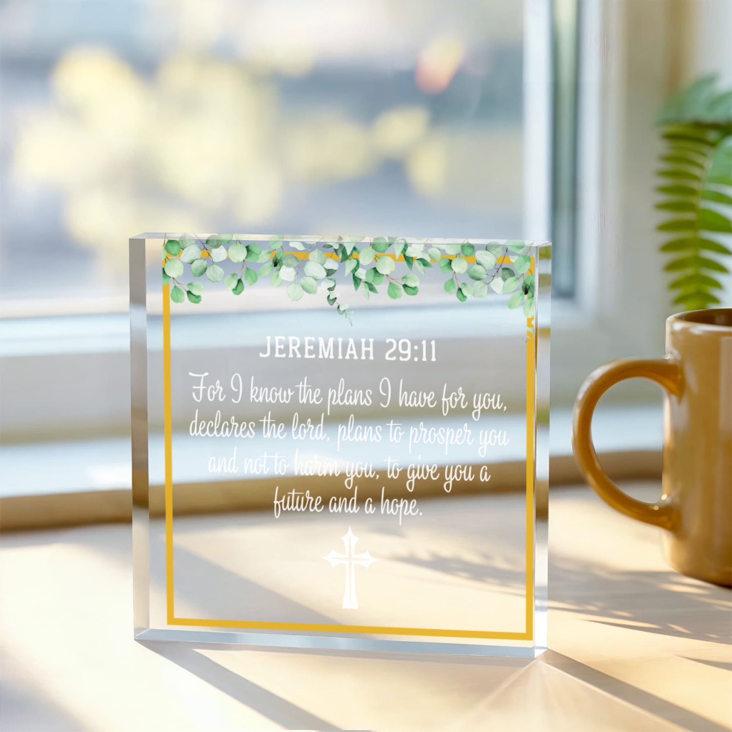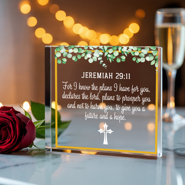 Bring daily peace and encouragement into your home with this elegant Jeremiah 29:11 acrylic plaque. Featuring the timeless verse,