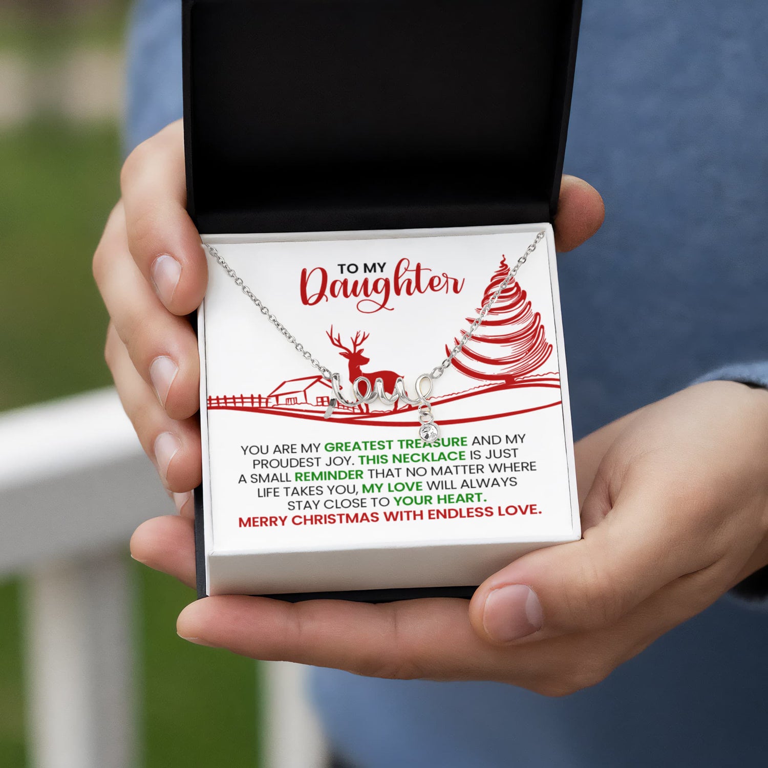 This dainty necklace leaves no doubt in her mind about your true feelings. Beautifully crafted, this adorable design spells out the word "love" in a playful cursive font.