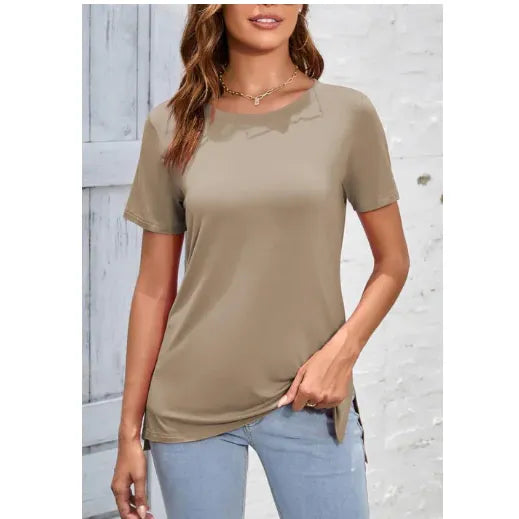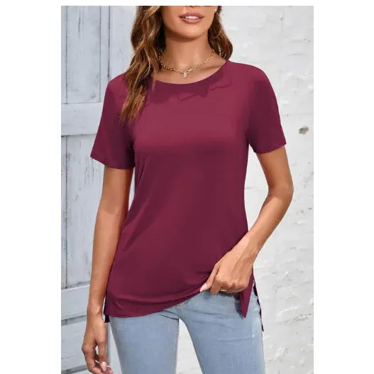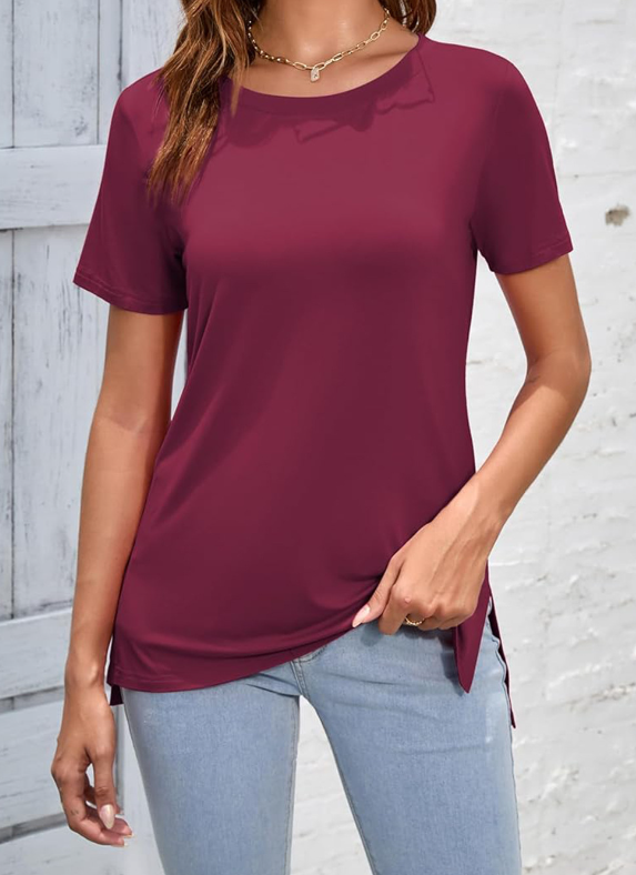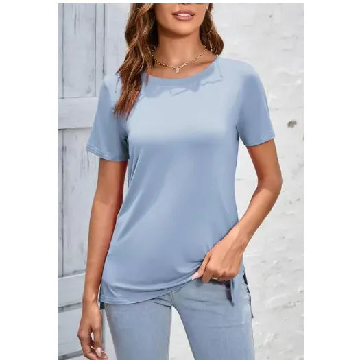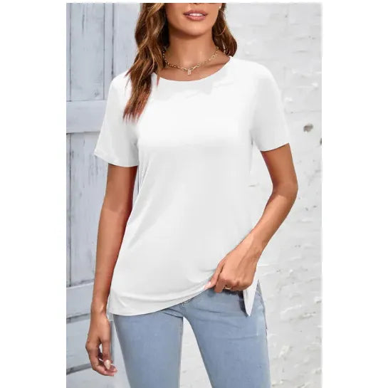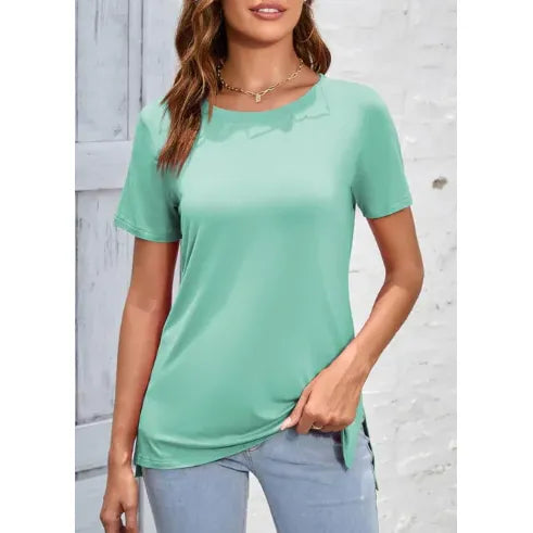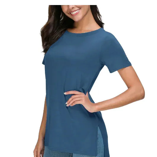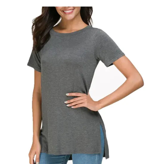 Elevate your style with our European and American Style Crew Neck Long T-Shirt with Side Slits.